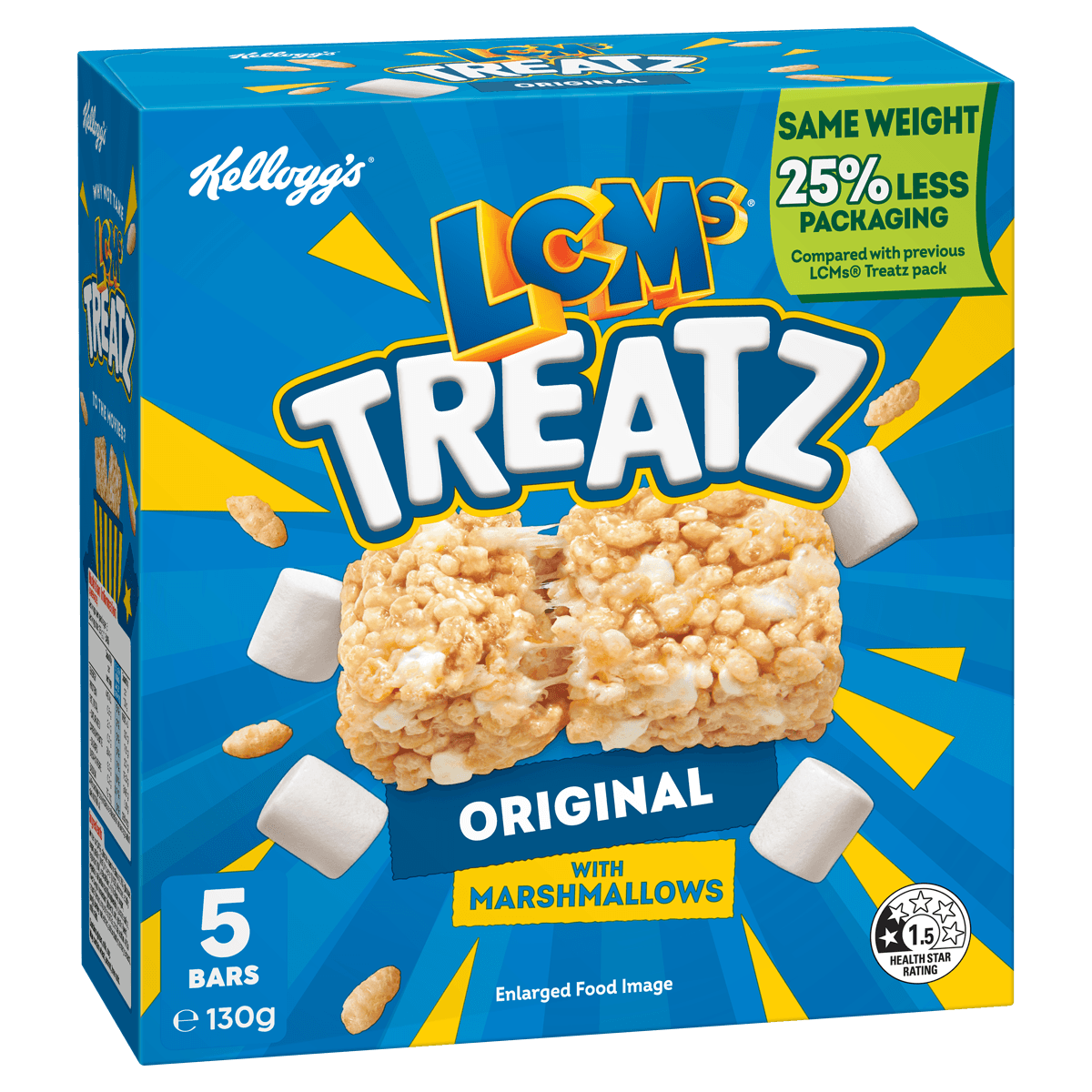 Kellogg's® LCMs® Treatz Original are made with the awesomeness of puffed rice, folded in with real marshmallows for an indulgent taste experience.